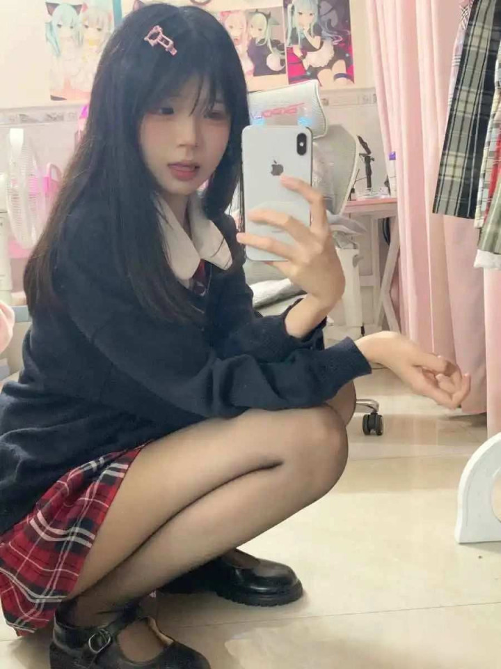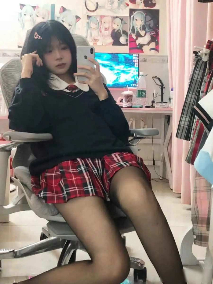 前几天我去学生社区办事,撞见一个叫莹挽的女孩,她穿得特别有特点。白衬衫配黑针织外套,领口打个红领结,下身是黑裤子和玛丽珍鞋,最抢眼的是半截红格子布料从外套下摆露出来。她站在镜子前整理衣服时,墙上贴的动漫海报、桌上乱放的电脑和窗帘透进的光,全被这套衣服给“镇住”了,感觉整个房间都成了她穿搭的背景板。